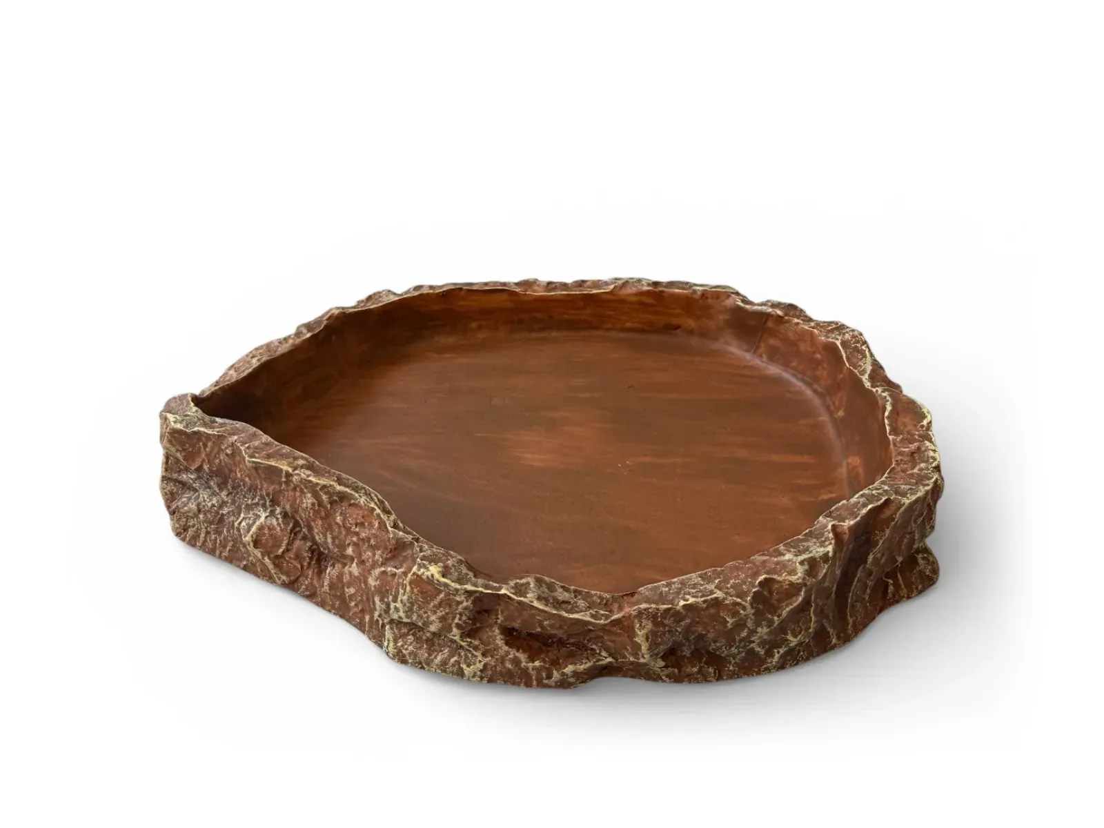 Miska została wykonana z trwałej żywicy poliestrowej bezpiecznej dla zwierząt i odpornej na warunki panujące w terrarium. Stabilna konstrukcja z płaskim spodem ogranicza ryzyko przewrócenia lub przesuwania się naczynia podczas użytkowania. Gładkie wnętrze ułatwia podawanie pokarmu oraz szybkie usuwanie zabrudzeń.