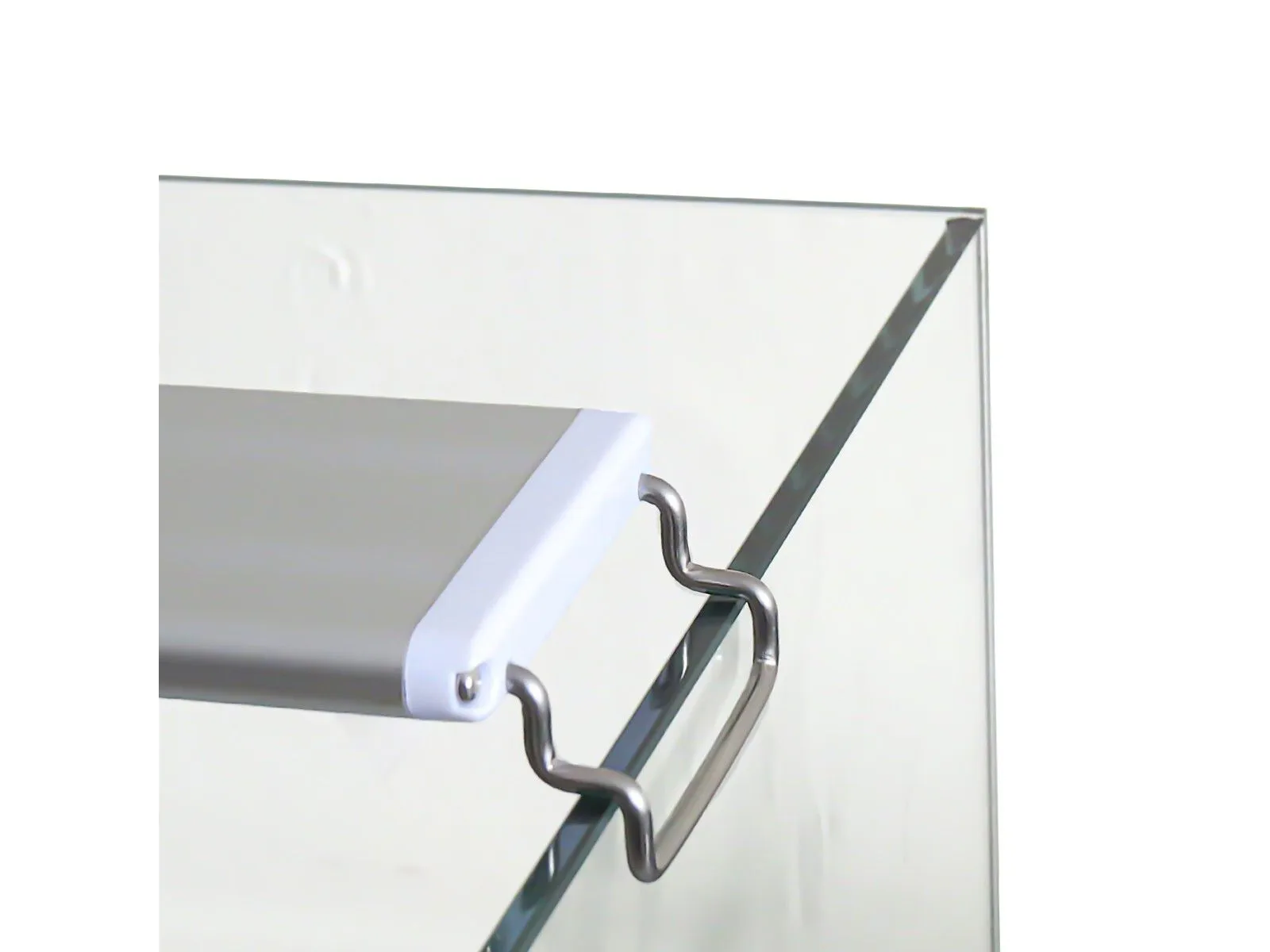 ✅ Solidna, a jednocześnie cienka aluminiowa obudowa z plastikowymi elementami jest elegancka i nowoczesna. Regulowane nóżki umożliwiają stabilne zamocowanie na krawędziach terrarium.