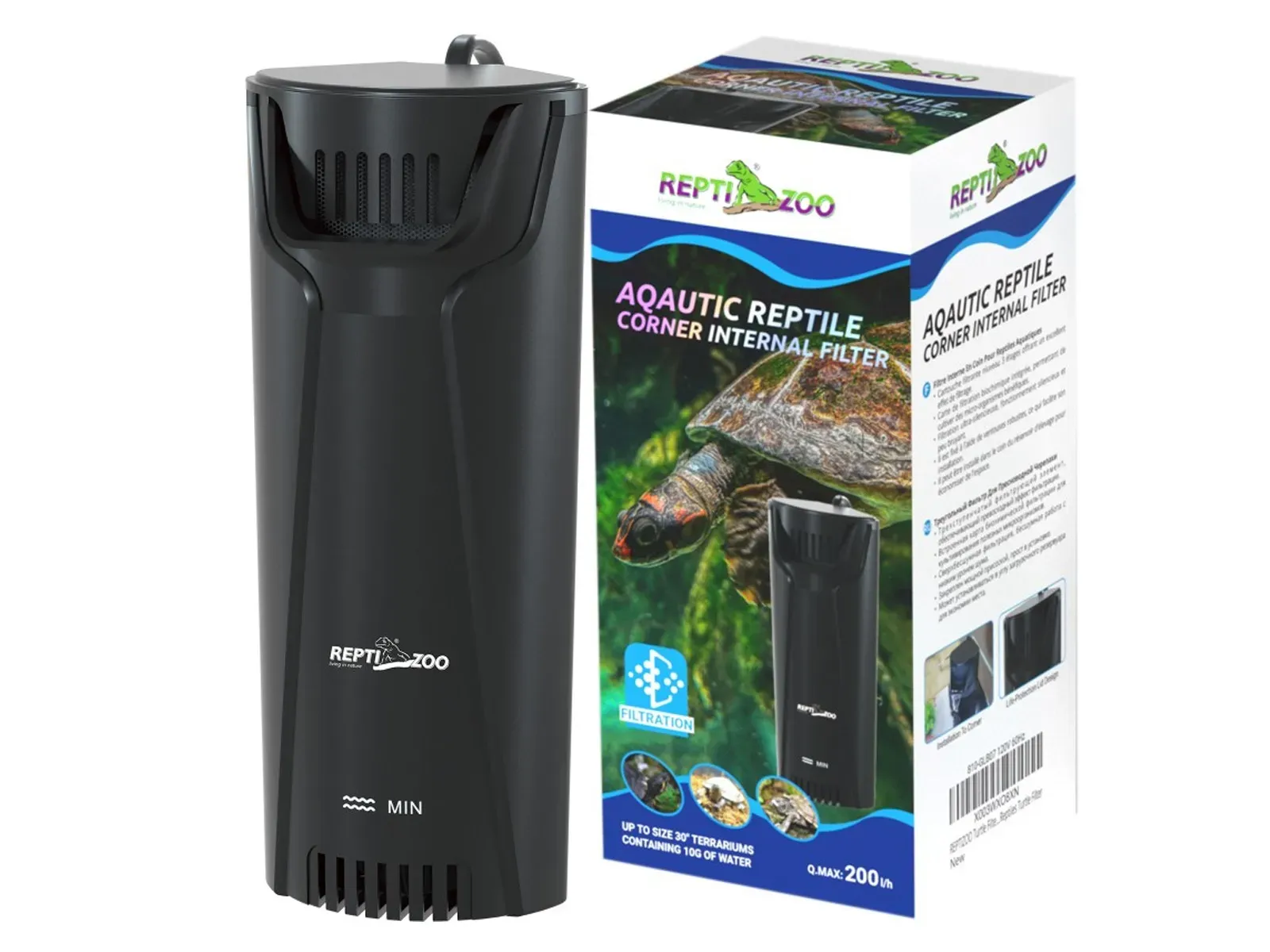 Filtr wody narożny do akwa - terrarium do płytkich zbiorników 200l/h Repti-Zoo