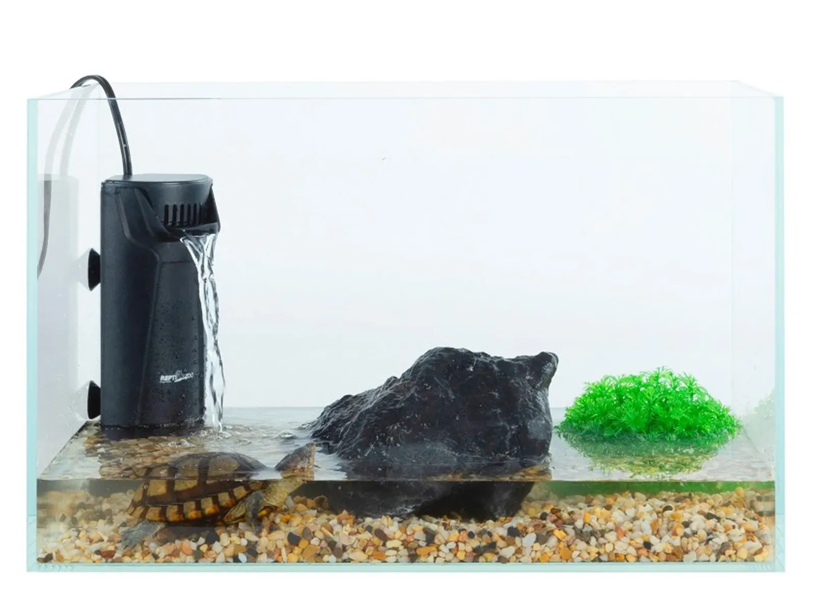 Kompatowy filtr narożny do akwariów wodnych, zapewniający skuteczną 3-stopniową filtrację nawet przy płytkiej wodzie (od 3,5 cm). Idealny dla żółwi, płazów, krabów i małych ryb.