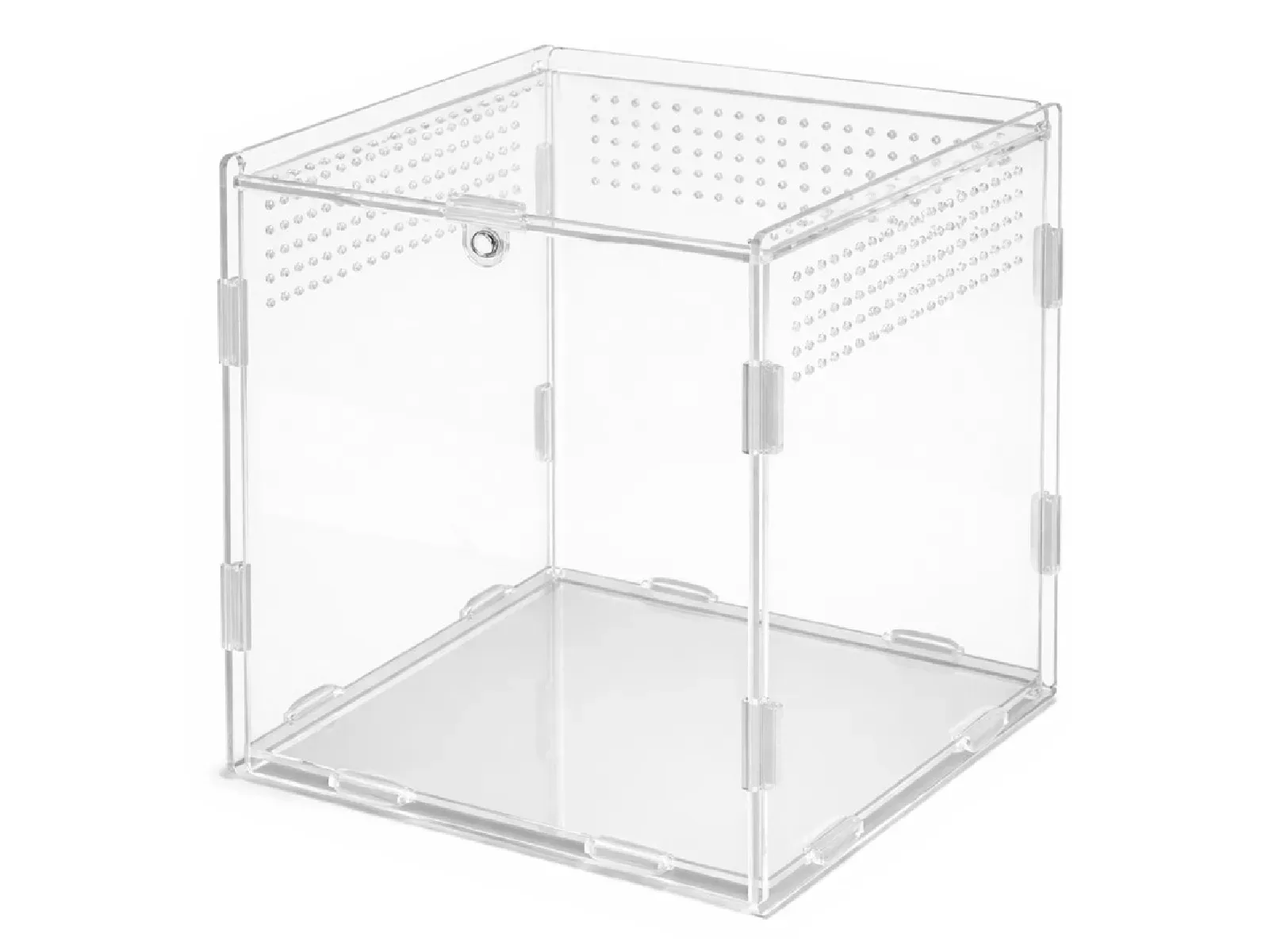 Terrarium akrylowe zaprojektowane z myślą o małych bezkręgowcach wymagających odpowiedniej wentylacji i bezpiecznej przestrzeni. Kompaktowa forma połączona z wysoką przejrzystością materiału zapewnia komfort hodowli oraz pełną obserwację zachowań zwierząt.