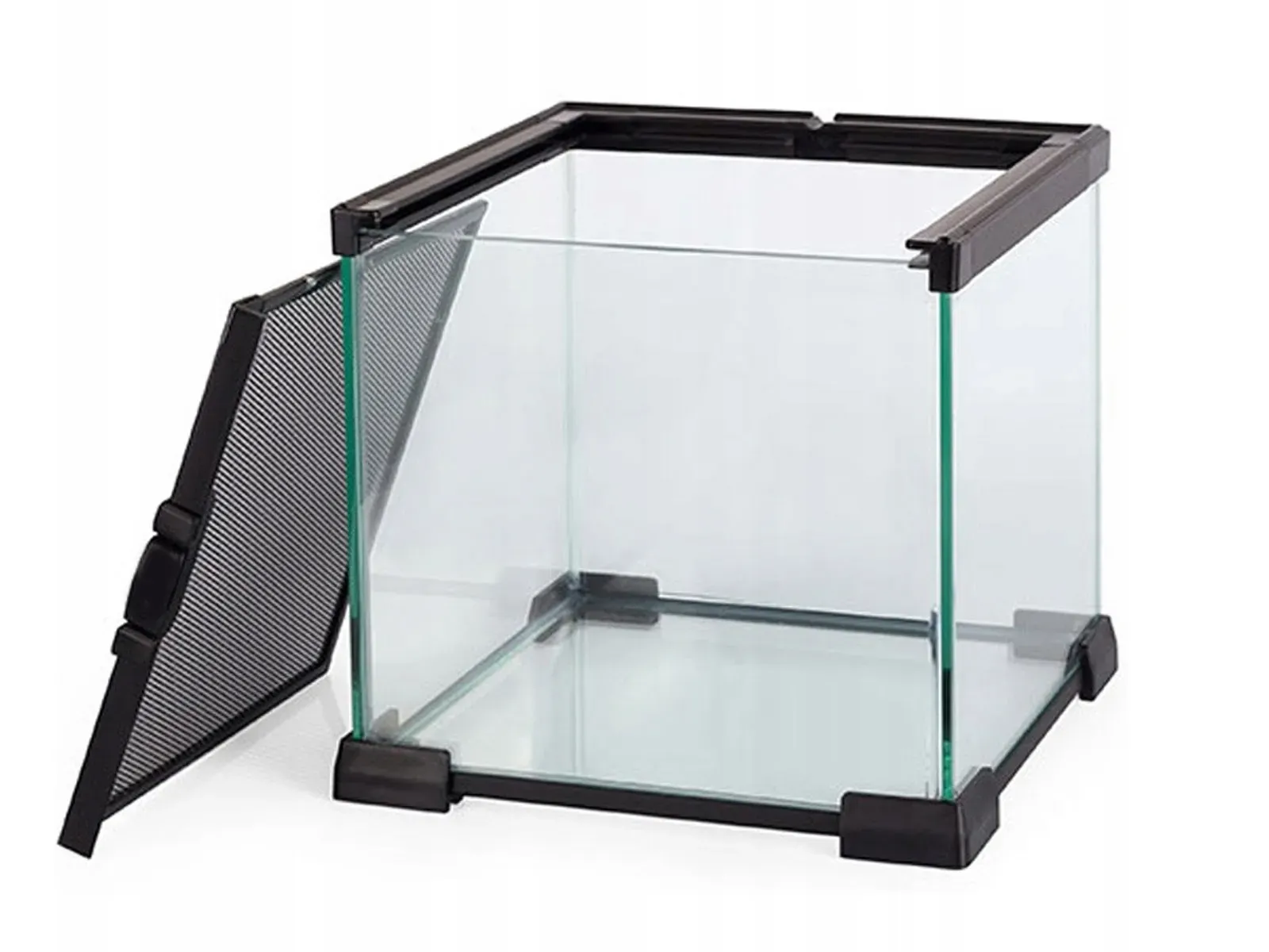 Świetnie nadaje się dla ptaszników, skorpionów, modliszek, owadów ozdobnych. Terrarium szklane wyposażone jest w praktyczną, wysuwaną górną wentylację z dodatkowym okienkiem serwisowym. Dzięki temu rozwiązaniu zbiornik może być nie tylko klasycznym terrarium, ale z powodzeniem sprawdzi się również jako akwarium dla małych rybek czy krabów. Konstrukcja terrarium zapewnia szczelność a górna pokrywa odpowiednią cyrkulację powietrza. Możliwość całkowitego demontażu pokrywy daje swobodę aranżacji wnętrza i łatwy dostęp do jego mieszkańców. To czyni ten model wyjątkowo uniwersalnym i funkcjonalnym rozwiązaniem dla wielu gatunków zwierząt.
