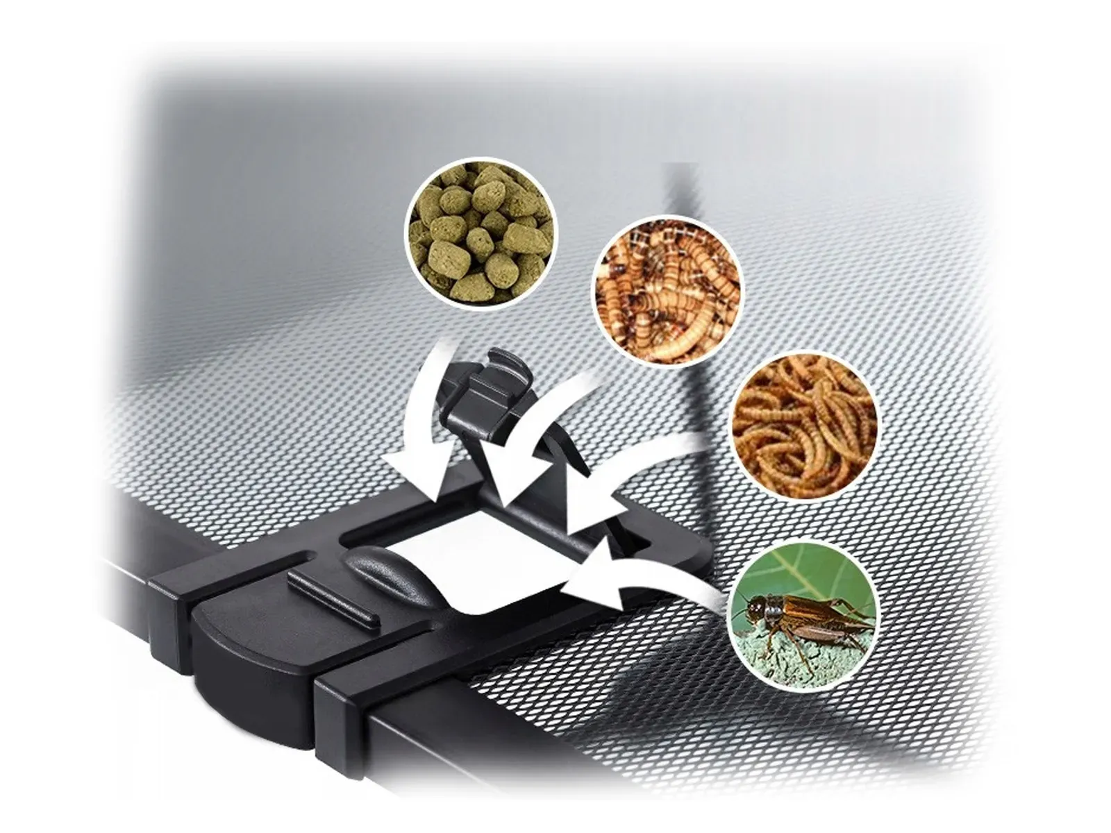 ✅ Wysuwana górna wentylacja – siatkowa pokrywa aluminiowa zapewnia skuteczną cyrkulację powietrza. Dodatkowe okienko serwisowe ułatwia karmienie i drobne czynności bez konieczności zdejmowania całej pokrywy.