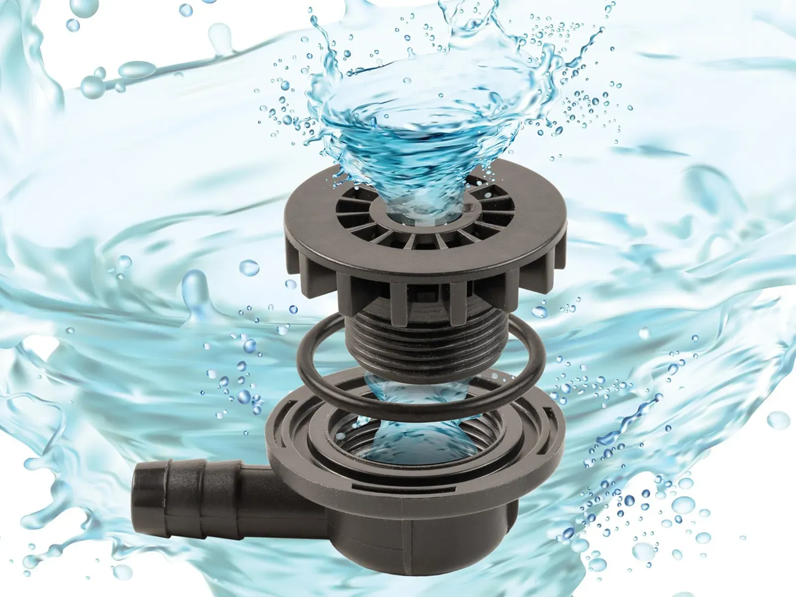 ✅ głęboka, wodoszczelna podstawa z odpływem i zaworem