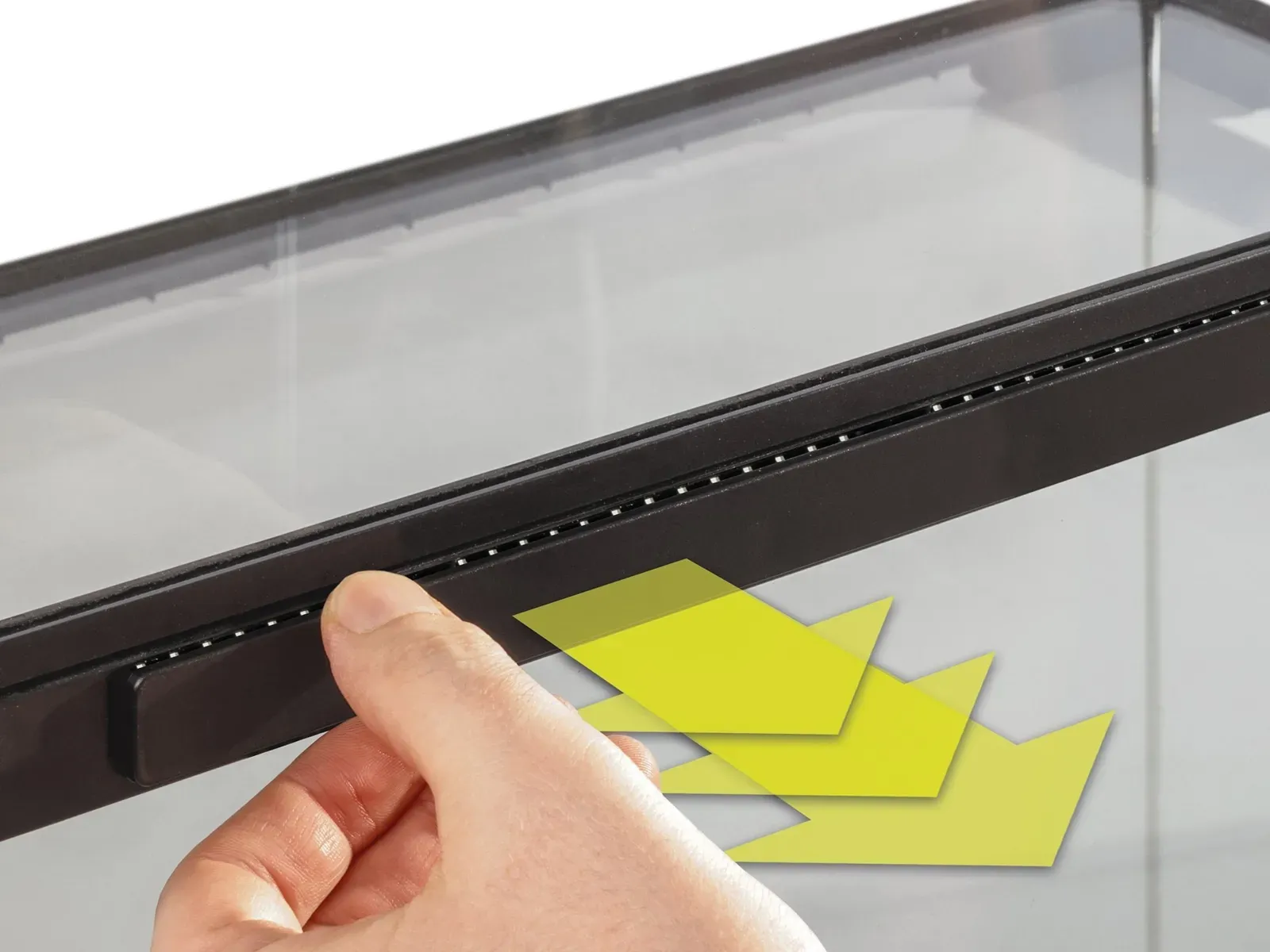 ✅ zdejmowana, blokowana pokrywa z siatki stalowej – wysoka przepuszczalność UVB i IR